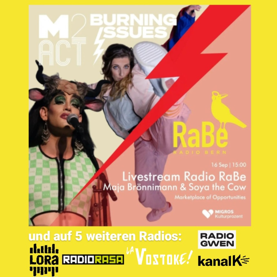 RaBe, emittente bernese, permette ai lavoratori non culturali di partecipare alla discussione di questi temi scottanti e quindi alla riunione della rete e ha trasmesso in diretta dalla Dampfzentrale sabato 16 settembre. Dalle 15.00 alle 18.00 è stato trasmesso il Mercato delle Possibilità, moderato da Maja Brönnimann (“Gschächnütschlimmers”) e dalla creatura drag sex-positive, femminista e vegana “Soya the Cow” (Daniel Hellmann).