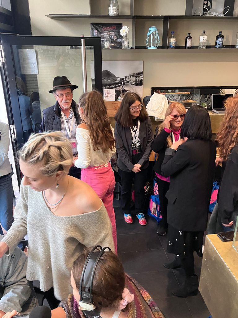 All postazione radiofonica al Bar Portici di Lugano: