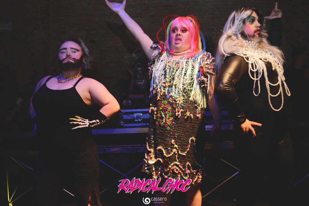 Justin Bond, Gaia Callas e Horrora Shebang di Drag Syndrome sul palco del Cassero LGBTI Center