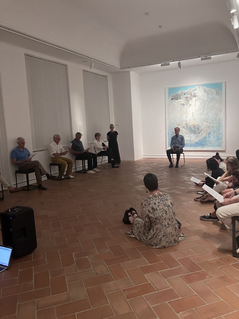 In occasione della mostra su Cesare Lucchini “La terra trema”, quattro drammaturghe e drammaturghi svizzeri e italiani (Anne Haug, Tito Bosia, Joséphine Bohr, Matteo Luoni) hanno scritto incontrato il pittore nel suo studio a Lugano, in momenti diversi. L’incontro – una conversazione, un’intervista, un’indagine, è stato registrato e ha costituito la base creativa di una scrittura specifica, che ha voluto coglie l’opera e la vita del pittore sotto diverse sfaccettature. Il dato di provenienza geografica di ciascun/a autore/autrice teatrale coinvolta e la loro storia professionale “nomade”, tra diverse città e paesi, è diventato il punto di incontro generatore di quattro drammaturgie testuali e sonore: al centro, come nelle grande tele in mostra a Mendrisio, quattro diversi paesaggi umani, persi tra trascendenza e immanenza, questa volta non più fatti di pigmento e materia, bensì di parole, suoni e voci.